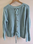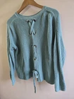 Women's Lucky Brand Size Large Teal Green 3/4 Sleeve Tie In Back Knit Sweater. Condition is Pre-owned. Shipped with USPS Ground Advantage. p/p 52 in length 24 in sleeve 18 in In excellent condition.