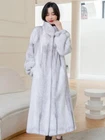 Women's Oversized Faux Mink Hooded Winter Coat Mid-Length Warm Casual