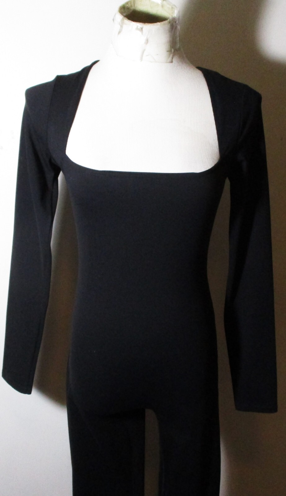 See my EBAY STORE at “SAMTPC53” to view 100’s more of my Women's SKIRTS!!! Combine Shipping: (on multiple items you pay full price on heaviest item first and then HALF PRICE shipping on ALL other clothes items. Women's Flared Full Body Suit. Brand: QINSEN. Description: women's Nylon stretch QINSEN long sleeve flared body suit, see pics. Color: Black. Size: L (please see measurements). Measurements: 15" armpit to armpit, 54" neckline to bottom hem, 30" inseam, 20" insleeve. Material: 78% Nylon, 22% Spandex. Condition: Excellent condition, NWT.