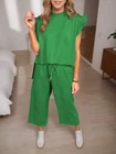 Description Women Ruffle Sleeve Top and Loose Cropped Pants Set Color: Black/Green/White Material: 95%Polyester5%Spandex Style: Top and Pants Set Top Print: Solid Sleeve Length: Short sleeve Sleeve Type: Short sleeve Length: Cropped This two piece set is stylish with textured fabric made The ruffled sleeve crew neck top is feminine and elegant The cropped length is chic while the drawstring waistline is adjustable Package Content: 1 x Women Top and Pants Set Payment 1 . We accept PayPal only. 2 . Payment should be completed within 4 (Four) days of auction closing. Or unpaid dispute will be filed for closing auction. 3 . Sales Tax of 9% will be applied for orders shipped within the state of California 4 . We will leave a positive feedback immediately after payment is received. We appreciate a positive feedback as much as you do. If for some reason there is any issue with the purchase, please contact us prior to leaving feedback, and we will be glad to work with you to have it resolved. Shipping 1 . We Ship to United States ONLY. 2 . Ship from two warehouses and only to eBay ADDRESS. Package handling only takes 1 business day at our warehouse, so please make sure entering correct payment and shipping information before checking out. Once your payment is completed, pls leave ebay note if the changes are needed before we send the product. 3 . Truck company: 3-8 business days. | USPS: 2-6 business days. | UPS/FEDEX: 3-5 business days. 4 . Lccal pick up is available. Warranty and Guarantee 1 . All of our items come with a 30-day return policy. We ensure all our items are new and in excellent condition prior to shipping. In the event that you receive the item that is not to the standards above, please contact us via e-Bay messages. All returns must be in new original condition as received and should be shipped with delivery confirmation 2 . We ONLY accept the return for original package. Please make sure that item has NO man-made sabotage. Used items will not be accepted for return. 3 . We reserve the right to refuse any returns for objective reasons. 4 . All NON-seller mistake returns for refund are subject to 20% re-stocking fee and buyer should pay for the round-trip shipping fee. (E.g. you bought wrong model or wrong color). Feadback 1 .Any problem after receiving our goods,please contact us before leaving Neutral/Negative feedback.We promise to help you solve it asap,and make you feel satisfactory absolutely. 2 . Please DO NOT leave negative feedback without asking for help. Please do not leave negative or neutral feedback if you haven't received item in 30 days, because we have mentioned the shipping time repeatedly.