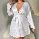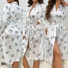 About this item: Butterfly print, full length sleeve, knee length, belted, open front Soft fabric has some stretch Model Measurements: height: 68.9inch; bust: 35.4inch; waist: 24.8inch; hips: 36.6inch. Wear: S Suitable for weddings, spa party, gifts, sleep, pajama party, loungewear, nightwear Please refer to size guide carefully before purchasing at below description