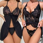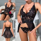 Features: 100% brand new The pajamas for women features v neck camisole top with adjustable spaghetti straps. This sleeveless top and shorts set give u a pretty and cute look The sleepwear set is perfect choice for Wedding Night, Honeymoon, Valentine's Day, Anniversary, Bedroom, Bathroom or every hot night,loungewear,sleepwear etc. Featuring lace patchwork, adjustable spaghetti strap. Made of polyester material, light and soft Makes you feel comfortable when wearing Perfect for your special moment with your love Material: Lace Colors: Black Size: S-XL Package include: 1 Set Women sexy Sleepdress or 1 x Sexy Thong