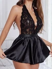 About this item Material: Polyester Features: Sleeveless, tie neck, backless, plunging neck, sheer lace, one piece, plain color This bodysuit lingerie is made of lightweight and breathable fabric, smooth to skin, comfortable for wearing Nice choice for wedding night, honeymoon, Valentine's Day, nightwear, sleepwear, anniversary and so on Please refer to the Product Measurement in image before ordering