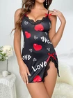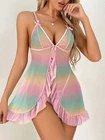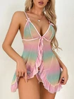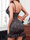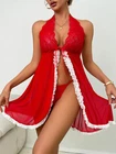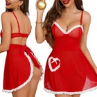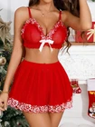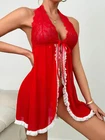 Indulge in your wildest fantasies with this stunning women's lingerie sleepwear set. This babydoll is perfect for a comfortable and relaxing night's sleep, featuring a V-neckline and adjustable straps for the perfect fit. The lightweight lace fabric provides a delicate touch, while the ruffle, strap, bow, and embroidered accents add a touch of elegance and charm. The sleepshirt is designed with a festive theme, perfect for Christmas, Halloween, Valentine's Day, or any other special occasion. The pull-over closure makes it easy to wear and take off, and the polyester and acrylic material require hand wash only for optimal care. This regular-sized sleepwear set is a perfect gift for her, whether it's for a birthday, wedding, or just to show your love and appreciation.