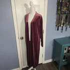 Elevate your outfit with this stunning velvet kimono robe / duster, perfect for lounging or adding a touch of elegance to your evening wear. Crafted from soft, plush fabric, this robe features a flowing design that drapes beautifully. Key features include: - Rich dusty color for a sophisticated look - Long sleeves for warmth and comfort - Lightweight yet stylish for year-round wear - Machine washable for easy care Ideal for cozy nights in or as a stylish layering piece, this robe is a must-have for any wardrobe.