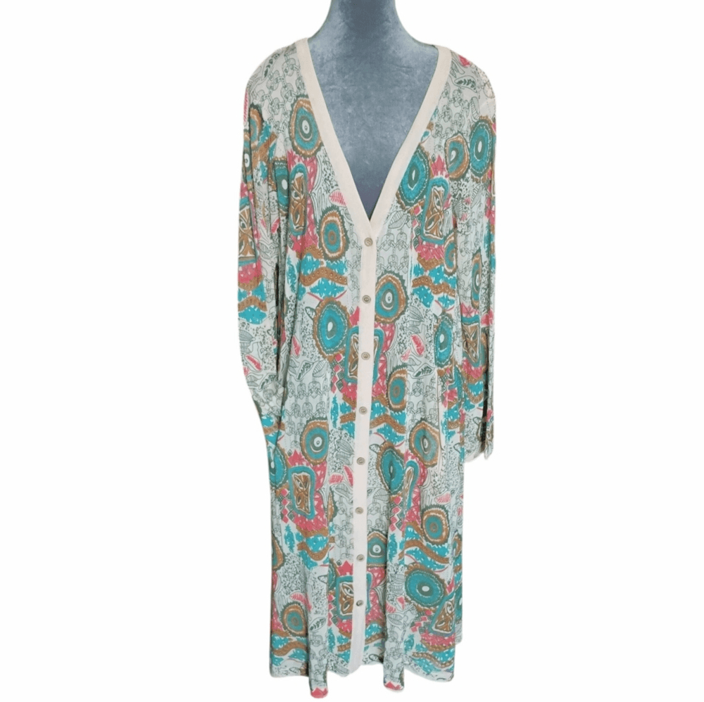 Vibrant bohemian style. Long sleeves. Button-down front. Perfect for layering. Excellent Pre-owned Condition Side pockets V neck Paisley print Women's size Large