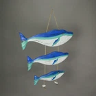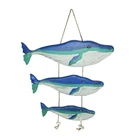 Wood Blue Humpback Whale Family Wall Hanging Sculpture Nautical Home Decor Art