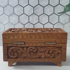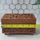 Vintage Hand Carved Ornate Wooden Blue Velvet Lined Jewelry Keepsake Box In good condition There is a name written on the bottom of the box Please view all photos for condition and measurements Thank you for viewing our products. PRODUCT SOLD AS IS. Please Message With Questions Prior To Purchase. If you have an issue with any of our items please reach out to us prior to contacting eBay. Thanks! Please note: We do sell new and used items. Our used items are pre-owned / pre-loved & may show signs of wear. Please view all photos for details, size, & imperfections as they are a form of the descriptions in addition to what is stated in the description section. We will do my best to inspect each item to find the best quality items possible. We do not include/replace batteries in any of our items unless they have been supplied by the manufacture and are in new unused condition. If an item is sent to you NEW / SEALED and you open it or remove the tags, it is NO LONGER ELIGIBLE FOR RETURN. Opened items / Removed tags - Means the item is NO LONGER in its original state and can no longer be sold as NEW. -Thank you for your understanding We are often asked about shipping cost. We are excited about your purchase and take pride in your package arriving to you undamaged. We wrap and cushion all necessary items prior to shipping which adds weight to your package. Unfortunately, this is not optional. Thank you for your understanding. We do not accept returns or issue refunds however in the event we do accept your return or issue a refund we do not reimburse your original shipping fee. Due to how eBay handles international shipping we do not accept any international returns. Thanks again!
