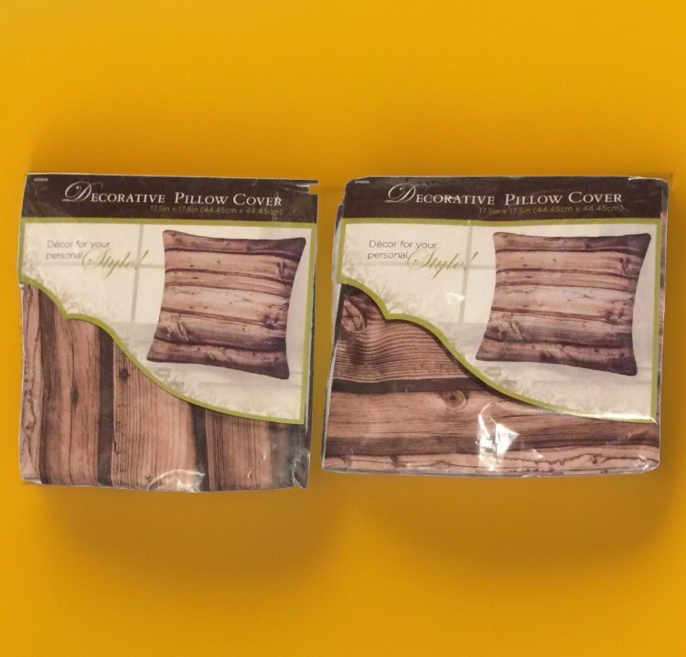2 Pillow Covers 17.5 In. Wood Grain Print Home Decor. Fits a 17.5in. x 17.5in. Pillow Form (pillow form not included) Condition is New. Shipped with USPS First Class Package.