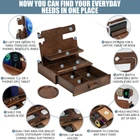 Wood Phone Docking Station for up to 3 Phones - Nightstand Organizer with Drawer for Valuables for Men & Women, Compatible with Apple Watch, Holds Phones, Tablets, Keys, Rings, Glasses, Watches & EDC Product Details Color: Brown Size: Drawer, For Apple Watch Brand: Parkway Home MPN: DrawerDocking UPC: Does not apply EAN: Does not apply Brand: Parkway Home Color: Brown Form Factor: Notebook Compatible Devices: Smartphones, Cell Phones, Tablets Compatible Phone Models: All Mobile Cell Phone Models - Charging Cables Not Included Package Dimensions: 11.61 x 9.21 x 4.29 inches Item Weight: 3.98 pounds Item model number: DrawerDocking Date First Available: October 11, 2023 Manufacturer: Parkway Home Country of Origin: China TAKE CONTROL OF YOUR GEAR - AND YOUR LIFE: Tired of tangled wires? Had it with clutter and chaos? Check out this phone docking station for men and women; It keeps your phones and tablets charging, your cables neatly organized, and your everyday must-haves right there at your fingertips; So you can grab what you need when you need it CHARGE 1-3 PHONES: Unlike other docking stations we've seen, this one provides separate spaces in front for 1 to 3 phones (or 1 tablet), plus ample space in back for a tablet, notebook, or laptop; Available in 2 finishes Brown and Black it's the perfect Android and iPhone docking station for busy folks like you who own multiple devices A PLACE FOR EVERYTHING & COMPATIBLE WITH APPLE WATCH: Our wood docking station for men provides a special space that custom-fits and made for Apple Watch Charger; Plus, you get hooks to hold keys and rings, a shelf for sunglasses and EDC, a pen slot, and even a drawer for valuables Carefully Constructed for Beauty and Durability: Forget cheaply made charging stands; We've crafted our men's docking station and organizer from premium solid ash, famous for rock-hard strength and gorgeous even grain; Choose from 2 versatile versions: with or without a spacious storage drawer; Note: This version comes with drawer YOU ASKED, WE LISTENED: You wanted a wooden phone stand that could safely hold multiple phones; So, we designed our men's docking station to fit up to 3 phones in front, complete with convenient slots for USB cables; Plus, we added 4 silicone pads to protect your tabletop IMPRESSIVE PRESENT: Our minimalistic and elegant design captures attention effortlessly while blending with any environment and individual style. Gift with assurance to friends and loved ones, as it serves as an excellent choice for birthdays, heartwarming dad-daughter gifts, Christmas surprises for boyfriends, gifts for gentlemen, husbands, and fathers. Rest assured, this versatile gift will delight men of all ages during the holiday season. USA ROOTS, WORLD-CLASS SERVICE: Nestled in the heart of the USA, our family business prioritizes your experience. No overseas hurdles just exceptional customer service. Share any defects, and well address them promptly address them within 24 hours, ensuring you join the ranks of thousands of satisfied buyers who confidently choose our products