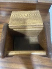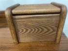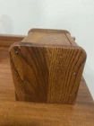 This vintage Wood Recipe, Index Card, Trinket Box measures 6x5x4 inches and is made in the United States. The box is designed to hold index cards or recipes, making it a functional and stylish storage solution. With a charming brown color and wooden material, it adds a touch of rustic appeal to any space. Perfect for organizing small items or displaying as a decorative piece in a kitchen or office, this Cornwall's box is a versatile and timeless collectible.