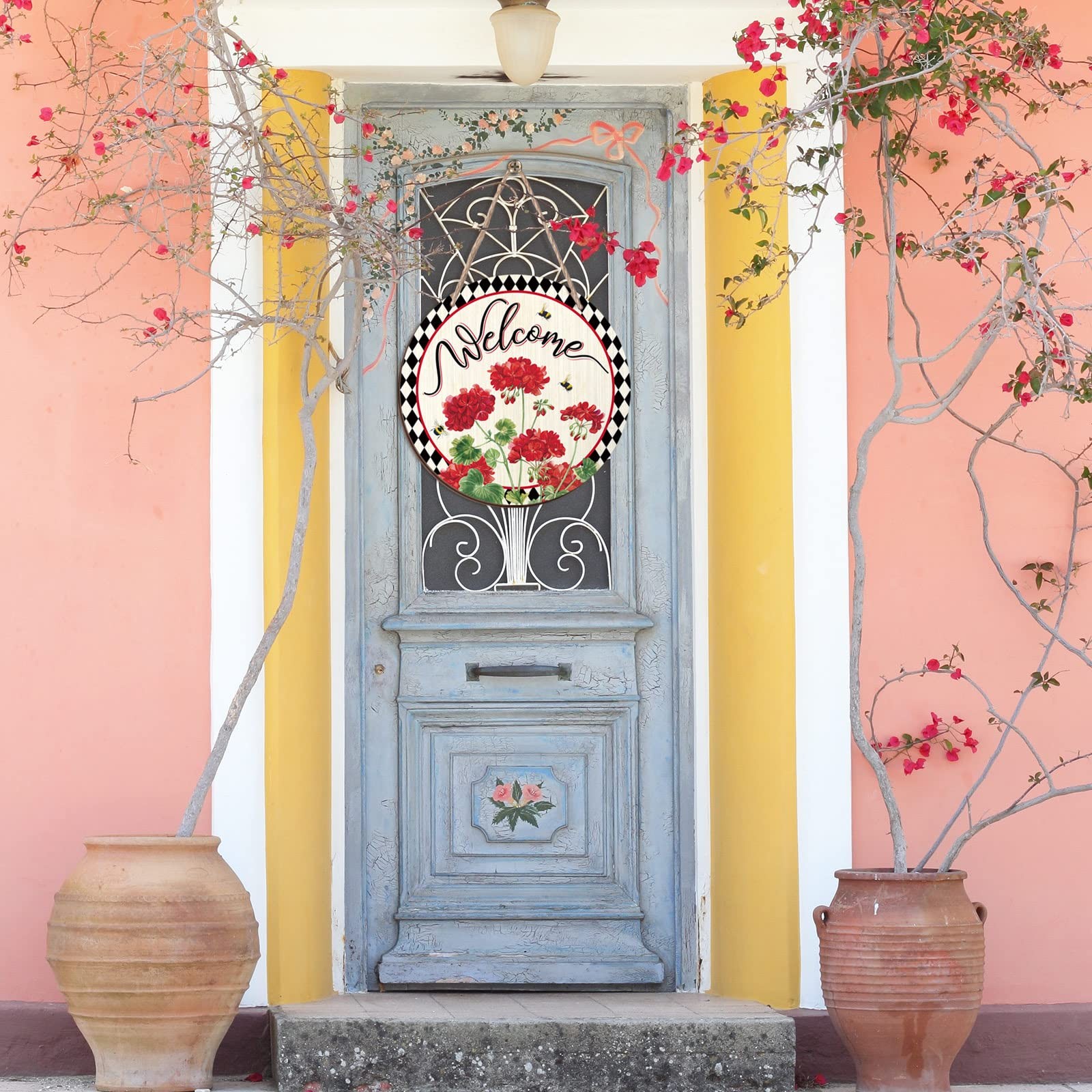 Features: Easy to apply: With provided rope, you can quickly hang the farmhouse welcome sign where you want to display it, such as doors, trees, windows and more, depending on your own decorating preferences, to fill the space with joy and elegance. Creative gifts: You can send our wood welcome signs for outside to your family, friends, colleagues, neighbors and others as presents on housewarming parties or other holidays, which could express your care while strengthening your relationships. Specifications: Main material: wood Color: as pictures shown Size: approx. 11.81 x 11.81 inches/ 30 x 30 cm Package includes: 1 x Geranium welcome sign Notes: Manual measurement, please allow slight errors on size. The color may exist a slight difference due to different screen displays. Package Information: you'll receive a charming welcome sign for front door featuring a delightful geranium theme, designed to radiate warmth and cheer; Ideal for both everyday and festive outdoor decor, it effortlessly enhances your front door, porch, or indoor walls with instant charm Vibrant Appearance: brighten your home with our eye catching geranium spring door hanger! Designed with bold red geraniums, playful yellow bees, lush green leaves, a crisp [Welcome] message, and a timeless white and black buffalo plaid wreath, this piece creates an inviting atmosphere that showcases your hospitality in style Trustworthy Material: crafted from wood, this geranium front door sign boasts expert craftsmanship,smoothly polished, odor free, and built to last; The sturdy, warp resistant surface features vibrant, fade resistant printing that stays vivid season after season, ensuring long lasting beauty Noticeable Size: each welcome door sign for front door measures approx. 11.81 x 11.81 inches/ 30 x 30 cm, an ideal size to make it a good adornment in the home, easy to apply and store, grabbing your guests' attention easily, suitable for plenty of indoor and outdoor places of different kinds of decoration styles Wide Range of Applications: the spring summer porch decor can be applied for a variety of occasions, such as birthday parties, family gatherings, dinners, weddings, holidays and so on, which play decorative roles in your bedroom, office, kitchen, front door, porch, garden, corridor, yard and more places