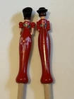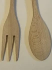 Wooden Kitchen Utensils, 12” Long, handles are plastic, one fork is a woman with Hungary inscribed on the handle and a spoon is a man with Budapest inscribed on the handle. Very colorful and unique items.