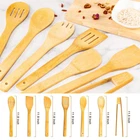 7 Pieces Utensils: Included fried spatula, slotted spoon, strainer spoon, soup ladle, salad fork, spatula, kitchen tongs. Go from cooking to serving, let the dishes have a natural and fresh flavor Healthy & Safe: Natural bamboo wood, fine texture on the surface, clearly visible; light weight and solid quality, which is highly renewable, it is a great sustainable option Easy To Store: The insulated handle protects your hands from injury, and the tail with round hole design to hang up, more convenient storage, saving kitchen space without chaos Easy To Maintain: Simply wash with mild soap and water, and dry thoroughly to store. Please do not put bamboo spatula into the dishwasher and soak them, and regularly care these wooden spoons with oil Multipurpose: Our wooden utensils for cooking is perfect for stirring, serving, mixing, tossing and tasting. Multiple specifications are available, which helps you create a culinary masterpieces. As a great gift for mom, dad or any cook