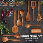Color Acacia Wooden Material Acacia Wood Style 10Pcs Wooden Utensil Set Product Dimensions 13.78"L x 0.78"W About this item Wooden Utensil Holder: Our wooden spoon comes with a Wooden Utensil Holder, a unique feature that sets it apart from other products on the market. The holder even has a leak hole at the bottom to prevent water accumulation 10-Piece Kitchen Utensils Set: Our complete wood kitchen utensil set includes all the essential cooking tools, such as a flat spatula, fried spatula, slotted spatula, kitchen utensil holder, strainer spoon, Soup Ladle,spaghetti spoon,salad fork, salad spoon, and mixing spoon. This comprehensive set covers all your kitchen needs from stirring to cooking Cooking Essentials: This 100% natural wooden utensil set is a must-have for any home chef. It includes multiple commonly-used kitchen tools and a kitchen utensil holder. Crafted by hand from high-quality, hard wood, these kitchen utensils are denser than any other materials available making them more robust and durable Easy to Clean and Store: The surfaces of all our utensils are smooth without burrs so they won’t damage your cookware. Cleaning is easy with warm water or soapy water. Each tool has holes in the handle allowing it to be hung up on any standard-sized cutlery rack when not being used - providing convenient storage options for busy kitchens that are also stylish! Number of Pieces 10 Is Dishwasher Safe No Material Type Free PVC Free, Cadmium Free, BPA Free, Plastic Free, Lead Free Handle Width 0.78 Inches Product Dimensions 13.78 x 0.78 x 0.1 inches Item Weight 1.72 pounds