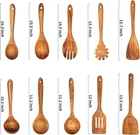 Wooden Spoons for Cooking,Wooden Utensils Cooking 10 Pcs Brown Product Details Color: Brown Material: Wood Brand: Gnyonat Style: Cooking style Number of Pieces: 10 【100% Natural Teak Wood】Wooden utensils for cooking is made of 100% natural teak wood.This wood material is hard not easy to deform and crack.The surface is covered with unique and beautiful textures.Long-term use that is still bright as new.It’s a very high-end kitchenware set.It's loved by the majority of cooking enthusiasts. 【10-Piece Wooden Spoon set 】Wooden spoons for cooking includes wok spatula,slotted spatula,frying spatula,filter spoon,soup spoon,seasoning spoon,salad fork,rice spoon,oil spoon,spaghetti spoon,various functions and wide use,it can meet all your daily cooking needs. 【First-Class Craftsmanship】Our wooden spoons for cooking is made of whole wood,the finished product has been hand polished many times.There are no cracks and splicing marks on the surface,surface does not leave any wood thorns or dents,the hand feels smooth and delicate like silk,its destined to replace other out of date low-end kitchen utensils. 【Heat Resistant, Suitable for Non-Stick Pan】The wooden utensils for cooking has super heat resistance and will not melt or deform when stirred in the boiling soup,and will not melt due to high temperature like rubber kitchen utensils, good heat insulation performance, and can prevent hand burns. Wood cooking utensils prevents from scratching expensive non-stick pans,which can protect other tableware in your kitchen. 【Easy To Clean & Store】Our wooden spoons for cooking that is very easy to clean.The smooth surface only needs to be rinsed with clean water,then wiped clean with paper towels or sponges,hung on the storage rack to dry naturally,it does not take up your kitchen space.