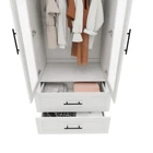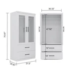 This freestanding wardrobe is a perfect addition to any bedroom. Its contemporary/modern style and medium wood tone make it a stylish and functional piece of furniture. The wardrobe features two hinged doors and two drawers, providing ample storage space for your clothes and other items. The hanging rail and mirror shape add to its functionality, making it an ideal choice for adults who want to keep their bedroom organized. The wardrobe is made of particle board and MDF/chipboard, and it comes with a 3-month manufacturer warranty. It is easy to assemble, and the required tools are a screwdriver and drill. The wardrobe is sold in a flat pack and weighs 123.2 inches, with a maximum weight per shelf of 50 lbs. It is suitable for any bedroom and is a must-have for anyone who wants to keep their clothes organized. Refined Design: Influenced by European elegance, our wardrobe blends intricate detailing with a modern edge. The rich finish accentuates the wood's grain, making it versatile for any décor style. Efficient Storage: In addition to its looks, this armoire offers an abundance of storage space. Its layout features multiple compartments for hanging clothes, folding items and accessories to keep the space organized and clutter-free. Sturdy and Durable: Built from durable materials, this wardrobe assures longevity. Its robust construction withstands daily use, while high-quality hinges and smooth-gliding mechanisms ensure seamless operation. Easy Assembly Process: Detailed step-by-step instructions and labeled components simplify the assembly process. All necessary hardware is included, allowing for easy installation and ensuring a smooth experience. Suggestions to install by 2 people.