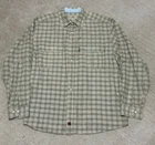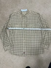 A shirt feels very new. This Woolrich shirt for men in size XL features a light brown checkered pattern with a button-up closure and long sleeves. Made of heavyweight cotton canvas material, this casual shirt is machine washable and designed for a regular fit. The collared neckline and button accents add a classic and preppy touch, while the shirt also includes convenient pockets and an extra button. Perfect for winter, summer, fall, and spring seasons, this versatile shirt is a timeless addition to any wardrobe.
