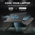 Be Optimal in Your Work, Be Comfortable in Your Leisure Time. Ready to transform your laptop experience with a foldable laptop desk? No matter where you are – in bed, on the couch, sitting at your desk, or even standing – this adjustable laptop stand and lap desk will elevate your computing experience. The bed laptop table holds computers hands-free in bed or when used as a couch desk for laptop. The wide panel and easily removable mouse pad make this lap desks for adults and kids a must have computing accessory. Not just a laptop desk for lap, this portable lap desk creates an ergonomic workstation at any desk. These adjustable laptop stands raise and tilt screens to the perfect position. The ergonomic laptop stand extends tall enough to create a portable standing desk riser for laptops. This adjustable laptop desk isn't just about comfort; it's a powerhouse of functionality. Equipped with two 3 inch fans and three USB ports, it's your ultimate solution for staying cool and connected. The large 18x11" adjustable, tilting panel, made of premium anodized aluminum, rotates 360 degrees, ensuring your laptop stays cool even during demanding tasks. Plus, it's designed to hold 15" notebooks, making it versatile for various laptop sizes. Our adjustable laptop table effortlessly adjusts in height from 2 to 21 inches, ensuring you can customize your workspace to suit your body and workstyle. Whether you want to work at a standing desk or simply want a more ergonomic sitting experience, this laptop raiser has you covered. Crafted with beautiful anodized aluminum, this laptop bed desk is a professional, premium accessory for your laptop. The laptop holder stand boasts a wider panel and increased width for a more comfort as a laptop bed table for laptop. Not only does the laptop holder desk redefine your workspace with style, but also enhances your productivity with its ergonomic design. Elevate your laptop experience today with this exceptional laptop stand and lap desk. Be Comfortable Everywhere - Experience the ultimate in comfort and versatility with this adjustable laptop stand for desk & foldable laptop stand for bed. The adjustable laptop table raises and tilts screens to perfect your posture in bed, on the couch, or at your desk. Make laptopping comfortable with this laptop tray for bed and sofa. Stay Cool & Connected - Equipped with 2 fans and 3 USB ports, this adjustable lap desk cools your laptop and powers your accessories. The adjustable computer stand for laptop 18x11" anodized aluminum panel rotates 360 degrees, holds up to 15.6" notebooks, and cools laptops. Laptop Lap Desk - the stable lap desk for bed holds laptops hands-free. Slip the bed desk for laptop over your legs or beside you and stretch out, get comfortable, and relax. Laptop Desk Stand - achieve your perfect posture with this desktop stand. This laptop stand for desk adjustable height and tilt panel cools laptops and places screens at eye-level. De-clutter and stay organized with this lap top stand. Elegance Meets Functionality - Our aluminum adjustable laptop stand for desk has a wider panel for more comfort as a laptop desk for bed. Add a touch of elegance to your workspace with this laptop lap desk for laptop.