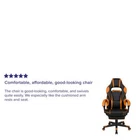 X40 Gaming Chair Racing Ergonomic Computer Chair with Fully Reclining Back/Arms, Slide-Out Footrest, Massaging Lumbar - Black/Orange Modern Swivel Video Game Chair for All-Day Comfort High Back Design with Adjustable and Removable Lumbar Pillow Lumbar Pillow includes Vibrating Massage controlled by 3 foot USB plug Arms recline with chair back for continuous support Reclining Back Lever adjusts 95° ~ 175° Slide-Out Footrest by pulling loop, then flip-up 360 Degree Swivel Seat with Pneumatic Seat Height Adjustment 5-Star Nylon Base with End Caps and Sporty Dual-Wheel Casters LeatherSoft is leather and polyurethane for added Softness and Durability Ergonomic PC chair ideal for gamers, dorm rooms, office workers, home offices Sit back, take a deep breath and get ready to have your mind blown when you take a ride in this thickly padded, reclining gaming chair with massaging lumbar. This cool-looking game chair has a striking contrast of black and orange upholstery. The removable lumbar pillow will not only support your lower back but will also massage those tense muscles when you plug in the attached 3 ft. USB cord so you can keep that marathon gaming session going without cramping up. When you need a breather from the action, recline this high back chair 95° ~ 175° to relax and open your diaphragm. Reclining chairs cradle your body in a comfortable position while relieving pressure from your back from sitting upright. The arms actually recline along with the back to keep you comfortable. Pull the loop to slide out the footrest, flip it up and take a quick power nap to recharge your batteries. Video game chairs are designed specifically for gamers comfort but will make an excellent ergonomic chair for the office, dorm room, or home office. Easily reach work surfaces without strain with the pneumatic level and elevate your feet on the footrest while typing to relieve leg pressure. A 5-star nylon base and sporty looking casters allow you to move this chair wherever you need it. Spills clean up effortlessly with a solvent based cleaner. Get the ultimate gaming experience when you add our black gaming desk with cup holder, headphone hook, and monitor/smartphone stand or gamer workstation with headphone holder and cable management. Product Specifications Color Black/Orange Material Foam, Leather/Faux Leather, Metal, Plastic, Plywood, Polyurethane, PVC, Twill Weight Capacity 280 Back Size 22"W x 31"H Assembled product length 68 Assembled Product Width 28 Assembled Product Height 51.25 Arm-Height From Floor 27.25" - 30.25"H Arm-Height From Seat 6" - 9.25"H Seat Height 18.5" - 22.5"H Overall Dimension 28"W x 29.25" - 68"D x 48" - 51.25"H