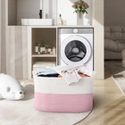 EXTRA LARGE SIZE BASKETS FOR BLANKET: Measured 23.6" in Length, 15.7" in Width, and 14.1" in Height. Super huge storage basket with 87L Large capacity can hold at least 5-6 throw blankets or 4 big pillows or 3 throw sized quilts. Making your blanket storage for living room becomes easy and convenient. UNIQUE RECTANGLE DESIGN: Unlike usual cotton rope basket, This is a rectangular woven rope storage basket. The special rectangle structure enables this pink basket bin not only can be placed on floor, but also fitted on a shelf for shoes and closet for laundry. A giant wicker basket for shelves and closet. NATURAL WOVEN COTTON ROPE BASKETS: The laundry hamper are made of premium cotton rope. The soft fabric is thick and durable for long-time use. No chemical smell. Healthy and safe for baby, toddlers and pets to touch in. It could collapse to flat when not in use. So it would not take your too much space to storage the pillow basket. MULTI-FUNCTIONAL BASKETS FOR ORGANIZING: The decorative storage baskets with pink mixed cream white neutral color scheme blends with your decor perfectly. Due to its neutral color looking, it can be used to store your extra throw blankets in living room, pillows and comforters in bedroom, Kids stuffed animals toys in kids room, towels in bathroom, baby product in nursery and clothes in laundry room. It doubles not only as a rope storage bin, but also as an additional decoration to any room. WASHABLE STORAGE CONTAINER: Hand or machine washable. XXXL large toy basket with two built-in handles is easy to moving toys, ,throws, blankets, pillows, sheets from room to room. Large open top is roomy and easy for kids to reach in and get toys which they want to play with. Making the toys more organized and stay where they should be. A gift baskets for family and friends.