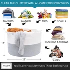 XXXL WASHABLE Blanket Basket Large 2PCs Blanket Storage Living Room - XXX Large Basket for Storing Blankets Toy Basket + Small Basket | Basket for Blankets (Grey and White) XXX Large size: 22 inch x 22 inch x 14 inches which makes the perfect blanket basket, toy basket, throw basket, cushion basket and much more No More Lost Keys, Remotes, Phones: For a short time we're sending a bonus small woven storage basket which is perfect for decor and small item storage Get a Big Basket You Love: other large storage baskets unravel, collapse and omit toxins - Huddle's large baskets for storage use denser cotton ropes so they hold their shape, and last a lifetime Machine Washable: Yes really! Finally give clutter a home your whole family can use - throw your extra large storage basket in the wash to refresh! How awesome The Big Basket Your Friends Will All Want: Your stylish woven rope baskets with handles have so many uses - basket for blankets (blanket holder), towel basket, toy baskets storage kids, rope laundry basket, pillow basket, throw blanket basket, shoe basket Organize with Style: Designed to complement any space and transform messy chaos into chic order, this XXX-Large blanket basket is a classy solution for keeping your home neat and tidy Invest in the Best: Made from 100% cotton, our thick rope baskets for storage offer superior durability and shape retention for dependable and sturdy organization that will stand the test of time Elevate Everyday Tasks: Our large laundry basket is where laundry meets luxury, bringing together practicality and elegance, infusing a touch of sophistication into mundane household chores From Our Family to Yours: At Huddle Supply Co, we are a small family business that understands the needs of family living and crafts every product with love and dedication to transform your living space into an orderly oasis Refresh, Don't Replace: These round baskets for organizing are machine washable for effortless care and long-term use, bringing functional design to your home and making maintenance a breeze Shipping We offer FREE shipping on all orders! We use a selection of shipping services such as UPS, FedEx, USPS etc. We only ship to the lower 48 states, no APO/FPO addresses or PO Boxes allowed. Local pickups and combined shipping options are not provided at this time. Return You can return a product for up to 30 days from the date you purchased it. Any product you return must be in the same condition you received it and in the original packaging. Please keep the receipt. Payment We accept payment by any of the following methods: PayPal Please pay as soon as possible after winning an auction, as that will allow us to post your item to you sooner! Feedback Customer satisfaction is very important to us. If you have any problem with your order, please contact us and we will do our best to make you satisfied. Contact Us If you have any queries, please contact us via ebay. We usually respond within 24 hours on weekdays. Please visit our eBay store to check out other items for sale! Thank you for shopping at our store.