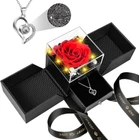 YIMISHCZ Preserved Real Rose box with I Love You Necklace Birthday Gifts RED Product Details Package Dimensions: 5.51 x 5.39 x 4.96 inches Item Weight: 0.317 ounces Manufacturer: YIMICZSH Item model number: Preserved Red Real Rose Flowers Batteries: 1 Lithium Ion batteries required. (included) Brand: YIMISHCZ Plant or Animal Product Type: Rose Color: RED Number of Items: 1 Occasion: Mother's Day, Engagement, Christmas, Birthday, Valentine's Day [You will receive] finely crafted rose necklace set, featuring a necklace with "I LOVE YOU" in 100 languages, Preserved flowers rose gift box with light-up LED strip, pearls, and a greeting card for you to personalize. [Preserved Real Rose] This is a uniquely designed and adorable gift, symbolizing unique love. The eternal rose never withers, representing everlasting love. It is the perfect gift for mothers, family, wife and girlfriends. The eternal rose can be preserved for 3-5 years without the need for watering and management. [The "100 Languages to Say] I Love You" necklace is an ideal present for mothers, grandmothers, girlfriends, and wives. As a luxurious and delicate item, it also serves as a storage compartment for other jewelry or rings. [Give her gift] Lovely gift for wife, mom girlfriend, daughter, grandmother, sisters, suitable for Valentine's Day, Mother's Day, Christmas, Thanksgiving, wedding, anniversary, birthday or other female festivals. [How to Say "I Love You" in 100 Languages] In a well-lit environment, hold the stone in the center of the necklace close to your eyes. Alternatively, go to a dark area with little to no light and turn on the camera function on your phone, aiming the camera at the stone. You will see 100 languages on the screen.