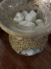 Yankee Candle Elegant Gold Crackle Mosaic Glass Oil Burner · Gold Mosaic Patterned Glass OIL BURNER · Suitable for use with Scented Fragrance Oils · Simply place the oil on the top and a lit tealight underneath · A Beautiful way to fragrance your home · Size: 5 ½ inches tall · This is in one piece and the bowl on top is attached. Simply place your scented fragrance oil in the glass bowl at the top and place a lighted tealight candle below to enjoy a beautiful light and your favorite fragrance. I believe this is from Yankee Candle but it is not marked and the original box is long gone. I didn’t actually use this as you can tell from the glass bowl at the top but I did display it and then it sat in one of my upper kitchen cabinets unused. I have two of these to sell as I like to buy two to put on my long dining room table. I am selling these individually. I will list the second one after this one sells. I ship to the UNITED STATES ONLY ! Buyer to pay the shipping based on zip code. I send to the address on the ebay/paypal account that paid for this. FINAL SALE so be sure prior to bidding. My home is smoke-free and pet-free. I try to package so the item is protected and lable the box as FRAGILE. 1 lb-12 oz 13x7x7 Please view other auctions as I have other burners for sale.