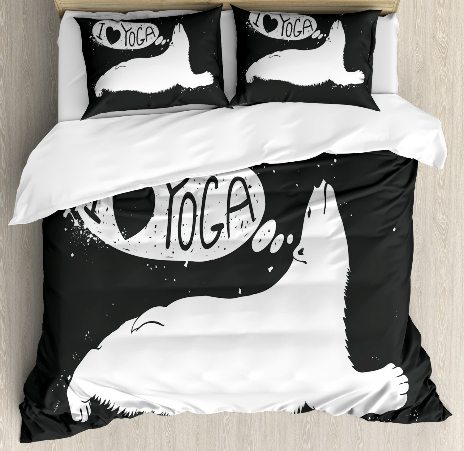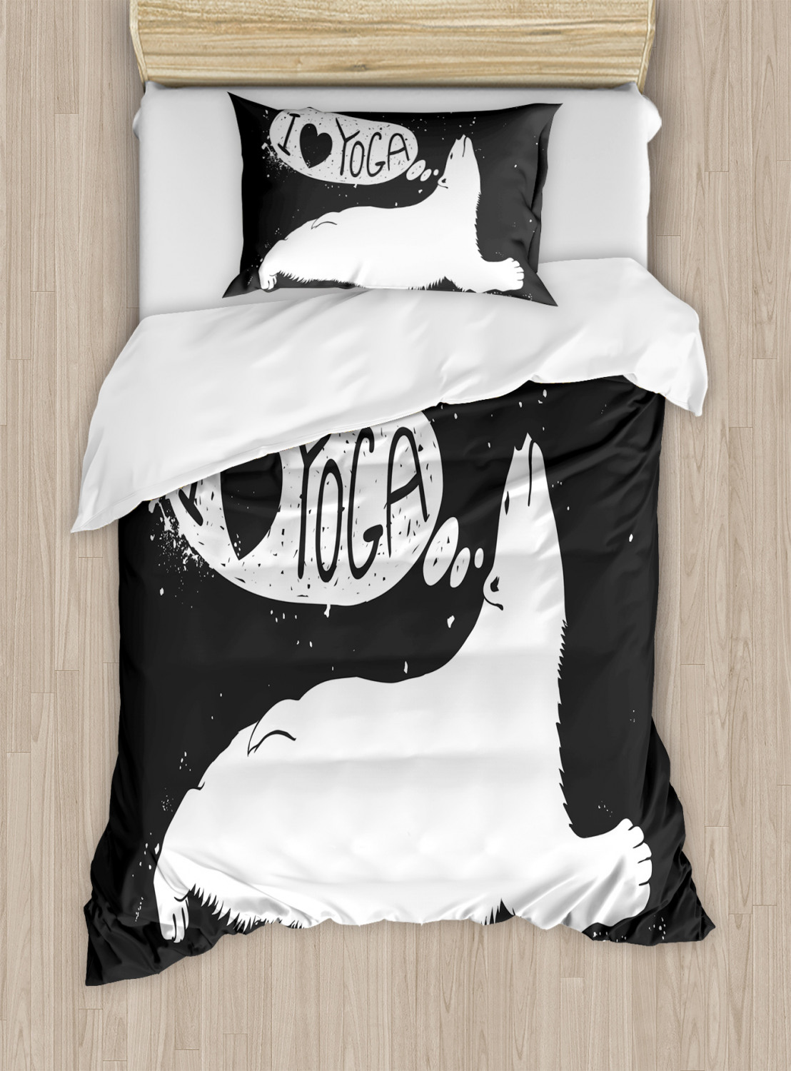 Yoga Duvet Cover Set King Size Cute Polar Bear Grunge with 2 Pillow Shams Time to embrace modern looks, feel-good fabrics, and high-quality materials! King, queen, or twin - these 3 pcs duvet cover sets will work in any bed for any season! Woven from 100% brushed microfiber fabric, our duvet cover collection is constructed for maximum strength and ultra comfort only for you and your beloved ones. All you need to do is to simply put our duvet cover on your comforter and secure it with zipper closure, and enjoy your new bedding set! MEASUREMENTS: KING SIZE SET: Duvet Cover (104" W X 88" L) and 2 Pillow Shams (36" W X 20" L). QUEEN Size Set: Duvet Cover (88" W X 88" L) and 2 Pillow Shams (30" W X 20" L). Twin Size Set: 1 TWIN Duvet Cover 68" X 88" + 1 Pillow Sham 30" X 20". The duvet cover FEATURES hassle-free hidden zipper and the pillow shams have an envelope closure. Please note that COMFORTER NOT INCLUDED IN THIS SET. This only duvet cover, allowing you to protect the comforter/duvet insert from dust, mites, and other stains. WRINKLE FREE - The microfiber material creates ultimate softness and comfort, also provides wrinkle, fade, and shrink resistance when properly cared for. Very durable and sustainable material that will not endanger your health or the environment, either. No chemicals used, No dye substance harming the health of you or your family, %100 microfiber recyclable environmentally friendly fabric. LOW MAINTENANCE: Machine washable in cold water. Suitable for tumble dryer use on low heat. Can be ironed on medium heat when necessary. Do not bleach. Choose your style between thousands of different and creative patterns. Or simply find your perfect gift idea ever for housewarming, birthday, bridal shower, Christmas, Mother’s Day, and newlyweds… You can find a theme for everybody and every interest in our Ambesonne Store. The images we display have the most accurate color possible but, due to differences in pc monitors, there can be slight color differences between the product and the image. Due to manual measurement, please kindly allow 1-2 cm discrepancy. The Duvet Cover and Pillow Shams are printed on the FRONT SIDE ONLY, the back of them are PLAIN WHITE-COLORED. This is ONLY the Duvet Cover, sold WITHOUT the Comforter.
