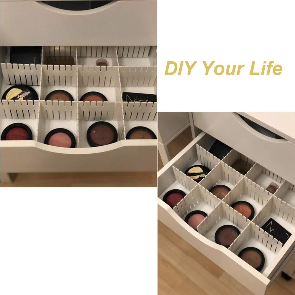 DIY Drawer Dividers, Youngine 8pcs Adjustable Storage 32X7CM, White Product Details Specific Uses For Product: Cosmetics Material: Plastic Special Feature: Adjustable Color: White Brand: Youngine Shape: Rectangular Customer Package Type: Multi-pack Number of Items: 8 Maximum Weight Recommendation: 1000 Grams Manufacturer: Youngine Part Number: ZLB-W Item Weight: 9.5 ounces Product Dimensions: 0.04 x 12.6 x 2.76 inches Item model number: 1 Size: 32X7CM Item Package Quantity: 1 Special Features: Adjustable Batteries Included?: No Batteries Required?: No Specific Uses For Product: Cosmetics Material: Plastic Special Feature: Adjustable Color: White Brand: Youngine Shape: Rectangular Customer Package Type: Multi-pack Number of Items: 8 Maximum Weight Recommendation: 1000 Grams Mounting TypeItem Weight: Insert Mount270 Grams Environment-Friendly Materials: Our plastic drawer partitions are made of high-quality, safe and environment-friendly PP materials, strong and durable, which can maintained in good condition for a longer time. DIY Combination: Easy to assemble. According to the different needs, you can DIY the suitable length for storage space flexibly. Easy to install: NO need nail, No need the glue, you can install by yourselves, and it's possible to set different shape to suitable for the different little objects Widely Application: Perfect for drawers/cabinet in your office, home and kitchen. It can be used for storage your office supplies, necktie, belt, underwear, scarf, cosmetics, knife and fork etc. Package: Pack of 8pcs, and each piece is 32 x 7 cm ( 12.6 x 2.8inch ). And you can cut the length you need. Easy to Use: *Step 1: Measuring storage space *Step 2: Cut the plastic drawer partitions to the needed length *Step 3: Splicing drawer organizer by upper and lower grooves and store items Specifications: *Material: Plastic *Color: White *Each piece size: 32 x 7 cm ( 12.6 x 2.8inch ) *Package weight: 0.3KG Package: *8pcs Drawer organizer