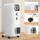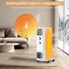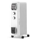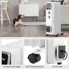 Introductions: Stay warm and cozy throughout the winter with this 1500W Oil Filled Radiator Heater. Designed for optimal comfort, this portable electric space heater is perfect for heating up bedrooms, offices, and other indoor spaces up to 200 sq.ft. With three heat settings, you can easily customize the temperature to your liking. Built with safety in mind, it features overheat and tip-over protection, ensuring peace of mind while you enjoy consistent warmth. Its quiet operation and portable design make it a practical and versatile addition to any home. Features: 1. Powerful and Efficient Heating: This 1500W oil-filled radiator heater quickly warms up rooms up to 200 sq.ft. The oil-filled fins efficiently retain heat to ensure consistent warmth throughout the day. With three heat settings and an adjustable thermostat, you can easily set the perfect temperature for your space. 2. Whisper-Quiet Operation: Enjoy a serene and cozy environment with this ultra-quiet heater. It operates with minimal noise, making it ideal for bedrooms and offices where silence is essential. 3. Overheat & Tip-Over Protection: If the unit overheats or is accidentally knocked over, it will automatically shut off to prevent any potential hazards. This makes it a safe choice for households with children or pets, giving you peace of mind while staying warm. 4. Cord Storage Rack: Keep your space tidy and organized with the built-in cord storage rack. When the heater is not in use, simply wrap the power cord around the storage rack for easy, clutter-free storage. 5. Portable Design with Wheels: Effortlessly move this heater from room to room with its four 360° swivel wheels. Whether you need extra warmth in your bedroom, living room, or office, this heater's portable design makes it easy to transport and use wherever it's needed most. Specifications: 1. Voltage: 120V/60Hz 2. Rated Power: 1500W 3. Coverage Area: 15-20 sq.m / 200 sq.ft 4. Heating Element: Heating Tube 5. Timer: No 6. Heat Settings: Low - High 7. Digital Display: No 8. Base Included: Yes 9. Remote Control: No 10. Certification: FCC 11. Warranty: 1 year 12. Product Dimensions: (12.6 x 5.9 x 15) in / (32 x 15 x 38) cm 13. Weight: 7.5 lbs / 3.4 kg Package Includes: 1 x Radiator Heater 4 x Wheels 1 x User Manual