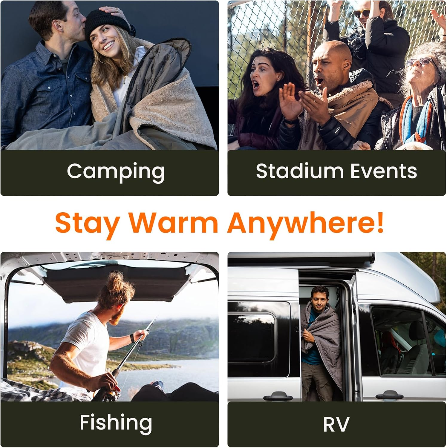 This heated blanket is a game-changer for chilly outdoor adventures! The 36W battery-powered warmth quickly heats up and stays cozy with 3 adjustable settings. The built-in 20,000 mAh power bank is super handy—keeps me warm for hours while doubling as a phone charger. Lightweight yet durable polyester feels soft, and the perfect travel size makes it great for camping, sporting events, or even just lounging at home. Love that it's rechargeable instead of disposable battery-dependent. The green color is vibrant, and it folds easily into my bag. Total must-have for cold-weather comfort on the go!