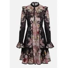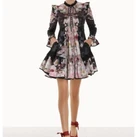 Zimmermann Black & Pink Floral Tie Neck Dancer Mini Linen Dress Size OP The Dancer Tie Neck Mini in Black Garden Floral A linen mini dress in a black with pink and cream garden motif, featuring an empire waist, straight sleeves with fluted cuffs, frills at collar shoulders and hem. Also features an adjustable velvet lace neck tie and a dropped hem 100% Linen Size OP Pls refer to brands offical website for more details on their sizing Fitted bodice Relaxed skirt with frill hem Frills throughout Flower studded button and loop closure down centre front Fabric covered buttons Black lace semi high neckline Velvet adjustable neck tie (can be tied in pussy bow) Contrast stitching throughout Pockets either side Fully lined Excellent condition If you have any questions or require more details, photos ect pls don’t hesitate to msg me Pls check out my other listings - am open to reasonable offers (no low balls pls) and happy to combine postage #designer #australian #alemais shona joy alice mccall acler aje spell