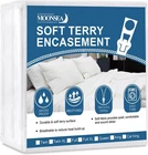 Fit great: Fits queen size mattress perfectly with dimensions 60 inches by 80 inches; 10-14 inches deep pocket. High-quality zipper: To avoid the zipper getting stick or dislodged when changing the mattress encasement, we use the best zipper on this mattress protector. Also, the quality of stitches you can trust which will not popped and ripped for a long time. Waterproof and breathable: Not only the top surface is waterproof like other zippered encasement, the 4 sides and the bottom of this zipped mattress protector are waterproof, which can keep any liquid from leaking into your mattress. Super soft terry surface: Stretchable knitted fabric fits the mattress easily and gives a comfortable feel while you sleep.