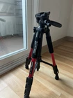 The Zomei Q111 Professional Portable Tripod in red is a sturdy and versatile camera accessory designed for various brands including Bower, Ambico, Arca-Swiss, Bushnell, Barska, and Benro. Made of durable aluminum, this tripod features leg angle adjustment, 360-degree rotation, flip lock, automatic lock, adjustable legs, and a pan/tilt head for smooth camera movements. Its compact and foldable design makes it easy to transport and set up, making it an ideal choice for photographers looking for a reliable and portable tripod for their camera equipment.