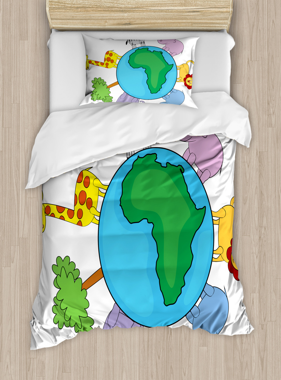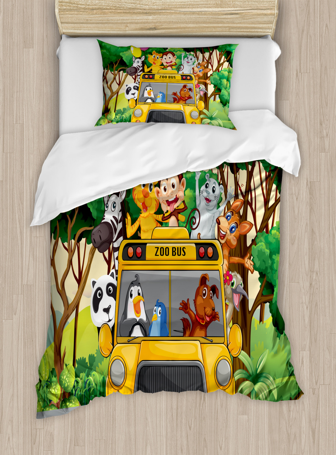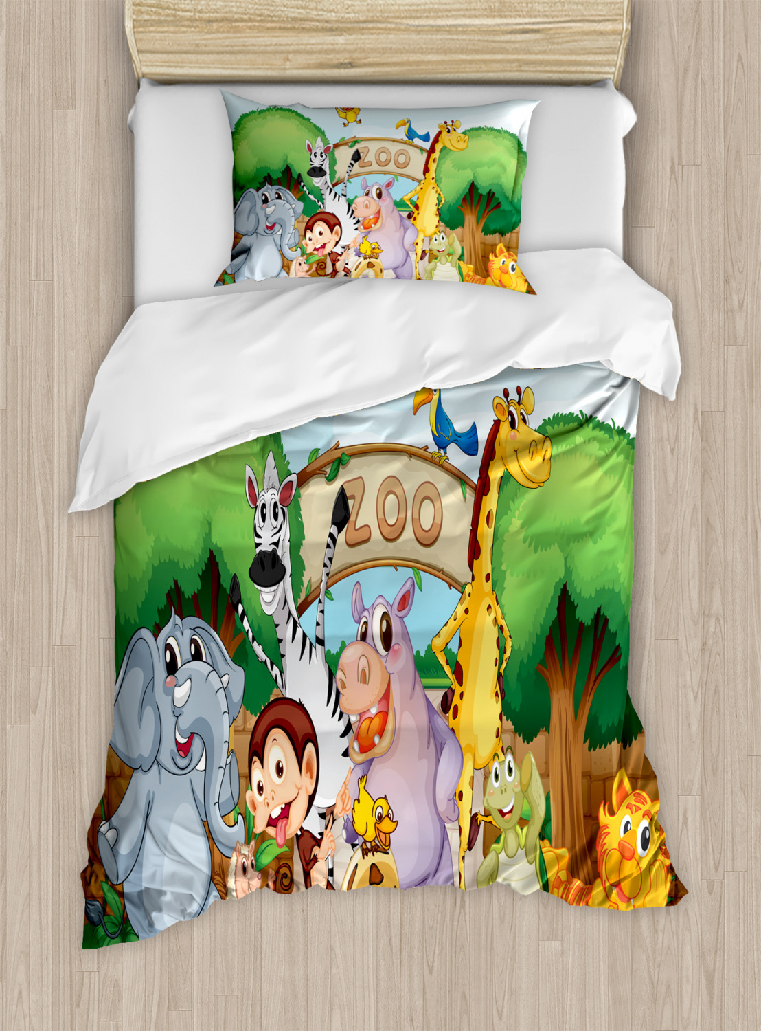 Zoo Duvet Cover Set Twin Queen King Sizes with Pillow Shams Ambesonne Time to embrace modern looks, feel-good fabrics, and high-quality materials! King, queen, or twin - these 3 pcs duvet cover sets will work in any bed for any season! Woven from 100% brushed microfiber fabric, our duvet cover collection is constructed for maximum strength and ultra comfort only for you and your beloved ones. All you need to do is to simply put our duvet cover on your comforter and secure it with zipper closure, and enjoy your new bedding set! MEASUREMENTS: KING SIZE SET: Duvet Cover (104" W X 88" L) and 2 Pillow Shams (36" W X 20" L). QUEEN Size Set: Duvet Cover (88" W X 88" L) and 2 Pillow Shams (30" W X 20" L). Twin Size Set: 1 TWIN Duvet Cover 68" X 88" + 1 Pillow Sham 30" X 20". The duvet cover FEATURES hassle-free hidden zipper and the pillow shams have an envelope closure. Please note that COMFORTER NOT INCLUDED IN THIS SET. This only duvet cover, allowing you to protect the comforter/duvet insert from dust, mites, and other stains. WRINKLE FREE - The microfiber material creates ultimate softness and comfort, also provides wrinkle, fade, and shrink resistance when properly cared for. Very durable and sustainable material that will not endanger your health or the environment, either. No chemicals used, No dye substance harming the health of you or your family, %100 microfiber recyclable environmentally friendly fabric. LOW MAINTENANCE: Machine washable in cold water. Suitable for tumble dryer use on low heat. Can be ironed on medium heat when necessary. Do not bleach. Choose your style between thousands of different and creative patterns. Or simply find your perfect gift idea ever for housewarming, birthday, bridal shower, Christmas, Mother’s Day, and newlyweds… You can find a theme for everybody and every interest in our Ambesonne Store. The images we display have the most accurate color possible but, due to differences in pc monitors, there can be slight color differences between the product and the image. Due to manual measurement, please kindly allow 1-2 cm discrepancy. The Duvet Cover and Pillow Shams are printed on the FRONT SIDE ONLY, the back of them are PLAIN WHITE-COLORED. This is ONLY the Duvet Cover, sold WITHOUT the Comforter.