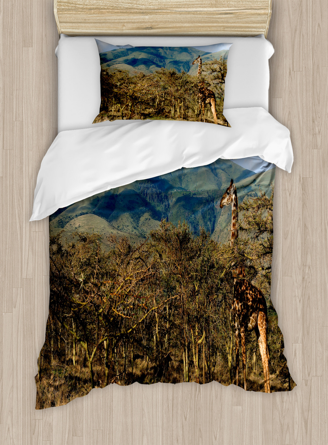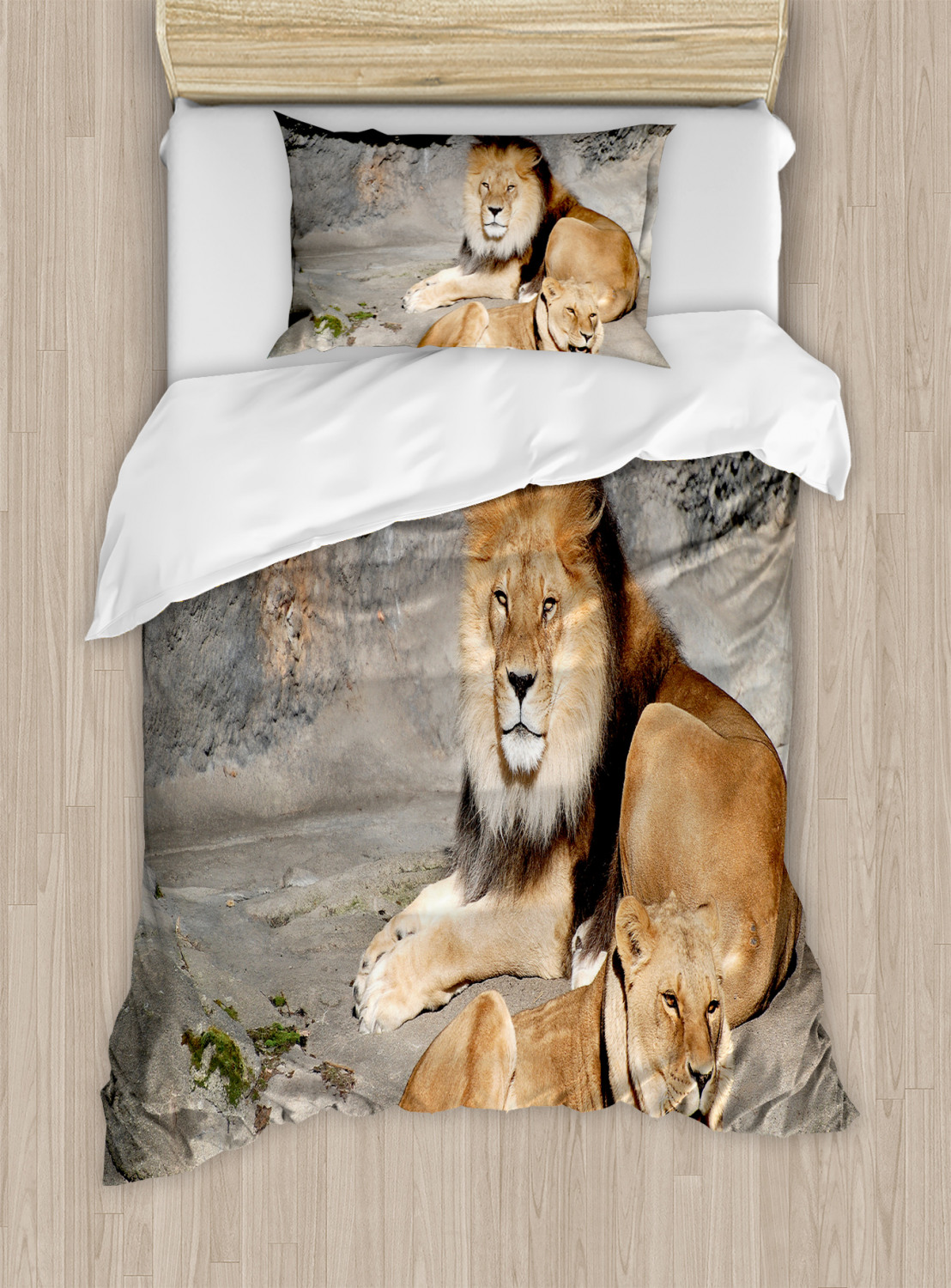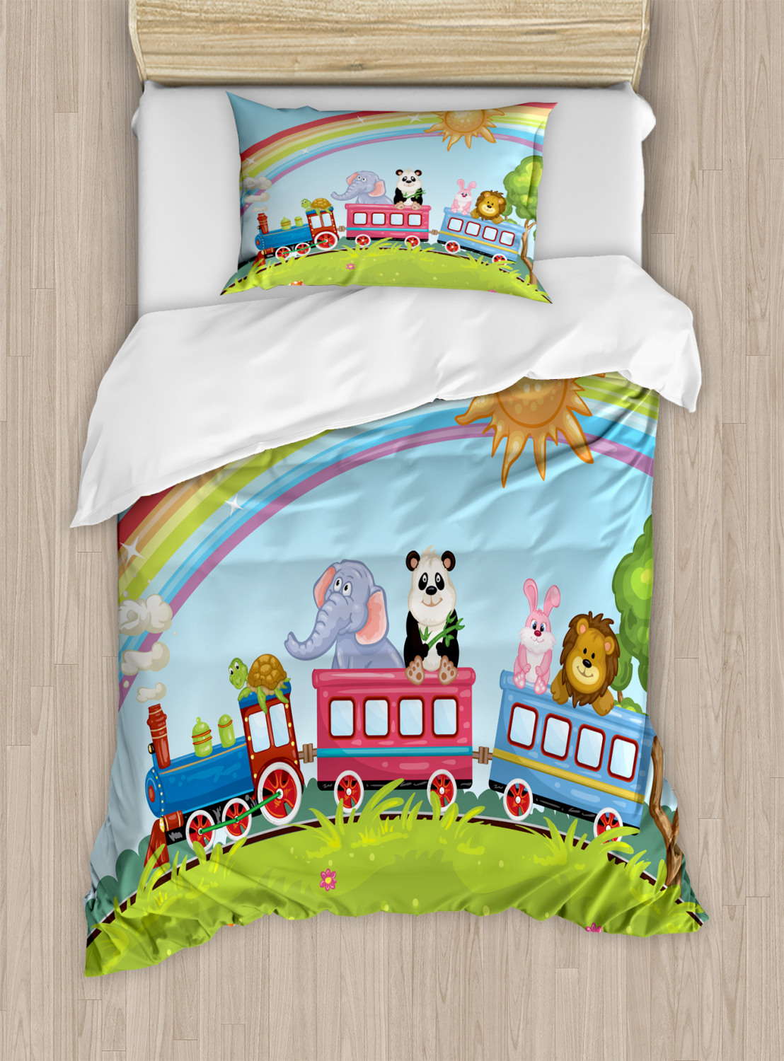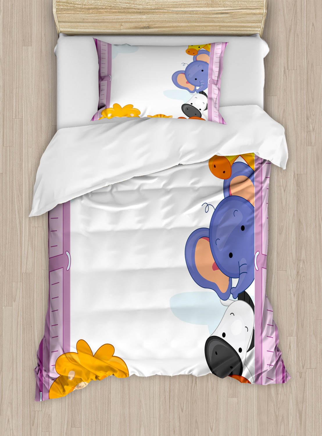 Zoo Duvet Cover Set Twin Queen King Sizes with Pillow Shams Ambesonne Time to embrace modern looks, feel-good fabrics, and high-quality materials! King, queen, or twin - these 3 pcs duvet cover sets will work in any bed for any season! Woven from 100% brushed microfiber fabric, our duvet cover collection is constructed for maximum strength and ultra comfort only for you and your beloved ones. All you need to do is to simply put our duvet cover on your comforter and secure it with zipper closure, and enjoy your new bedding set! MEASUREMENTS: KING SIZE SET: Duvet Cover (104" W X 88" L) and 2 Pillow Shams (36" W X 20" L). QUEEN Size Set: Duvet Cover (88" W X 88" L) and 2 Pillow Shams (30" W X 20" L). Twin Size Set: 1 TWIN Duvet Cover 68" X 88" + 1 Pillow Sham 30" X 20". The duvet cover FEATURES hassle-free hidden zipper and the pillow shams have an envelope closure. Please note that COMFORTER NOT INCLUDED IN THIS SET. This only duvet cover, allowing you to protect the comforter/duvet insert from dust, mites, and other stains. WRINKLE FREE - The microfiber material creates ultimate softness and comfort, also provides wrinkle, fade, and shrink resistance when properly cared for. Very durable and sustainable material that will not endanger your health or the environment, either. No chemicals used, No dye substance harming the health of you or your family, %100 microfiber recyclable environmentally friendly fabric. LOW MAINTENANCE: Machine washable in cold water. Suitable for tumble dryer use on low heat. Can be ironed on medium heat when necessary. Do not bleach. Choose your style between thousands of different and creative patterns. Or simply find your perfect gift idea ever for housewarming, birthday, bridal shower, Christmas, Mother’s Day, and newlyweds… You can find a theme for everybody and every interest in our Ambesonne Store. The images we display have the most accurate color possible but, due to differences in pc monitors, there can be slight color differences between the product and the image. Due to manual measurement, please kindly allow 1-2 cm discrepancy. The Duvet Cover and Pillow Shams are printed on the FRONT SIDE ONLY, the back of them are PLAIN WHITE-COLORED. This is ONLY the Duvet Cover, sold WITHOUT the Comforter.