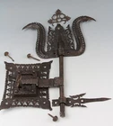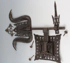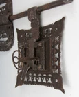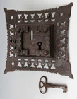 an antique, decorative hand forged and cut / carved iron Door Lock in South India known as: Manichitrathazhu with lock, bolt, plate, key, nails, ring, etc. - see all pictures please note: we are not familiar with this subject, after limited and non-professional research we have described it to our opinion, we can not date this item, we think it could be 17th or 18th century , it's provenance might help: it comes from an estate auction in The Hague of a private collection of items from Spain dating between the 14th and 18th Century, under which a key escutcheon with the coat of arms of the noble Spanish family ZÚÑIGA - SOTOMAYOR condition: nice patine, probably cleaned in a professional way, slightly crusty, the iron is firm, some losses (f.e. the finial of the bird-plate), we did not really wanted to force the key to much but it might work see the last picture for a sketch with messurements , weight all together circa 1700 gr. world wide shipping - you will be ordering registrated shipment provided by PostNL from The Netherlands, EU - to the PostNL conditions and destinations - with track & trace if offered by PostNL - shipment out of the EU will be under Incoterm DAP and HM-code: 9706 - because of the weight the shipping costs will be high (up to 72usd) - the shipping costs for Europe are lower then 72usd, but are not showing on eBay, please ask the seller and - buyers in Europe: please wait with payment to receive an invoice with the correct, lower shipping costs. we are: delta 98 den haag The Hague, The Netherlands, EU registrated at the Chambers of Commerce, The Hague: Kamer van Koophandel Haaglanden, file 27133335