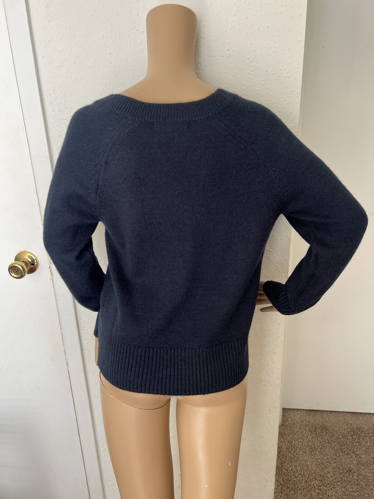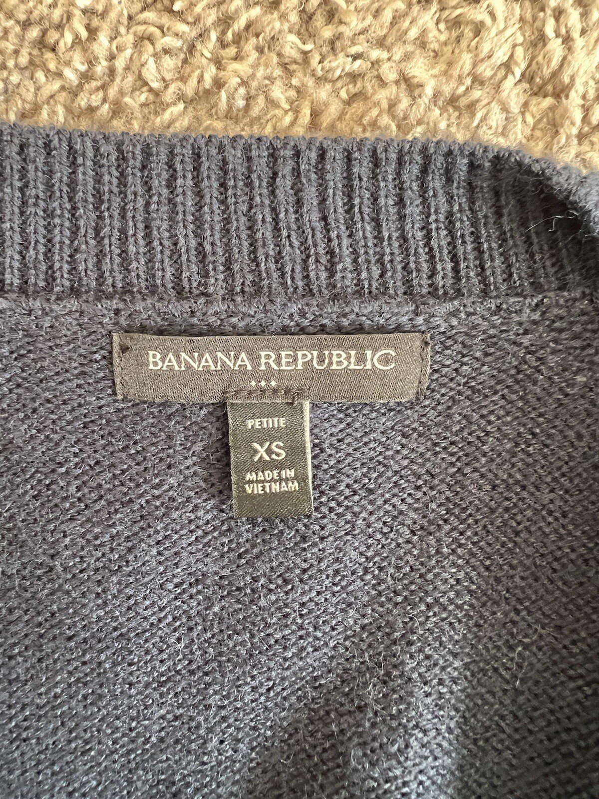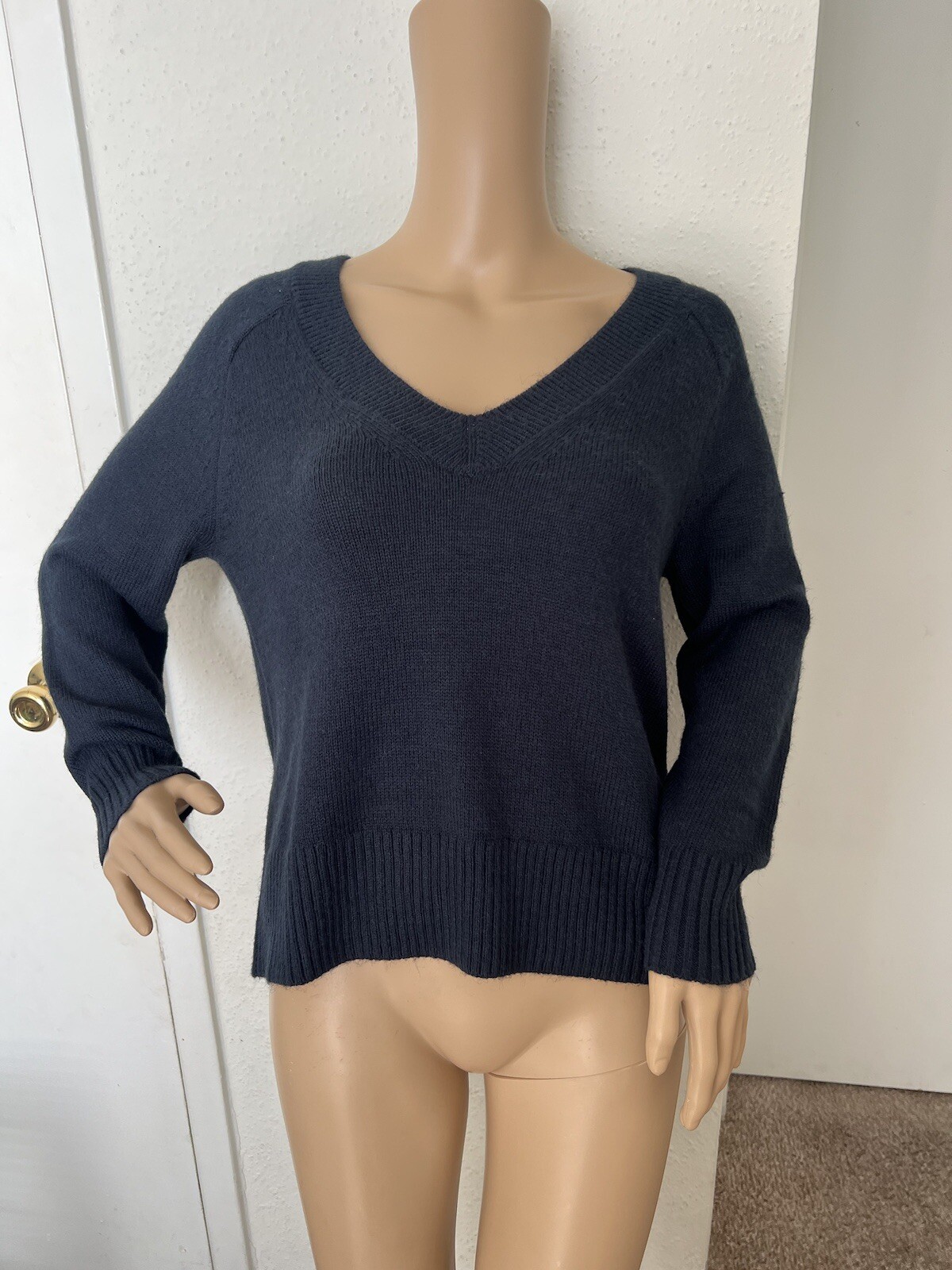 This is a women's Banana Republic V-neck sweater in size XS. The sweater is a pullover style with long sleeves and a V-neckline, made of a knit material. The color of the sweater is blue, making it a versatile piece for any wardrobe. It is a regular fit sweater, suitable for everyday wear and can be a stylish addition to any outfit.