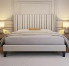 Queen Bed Frame Upholstered Platform Bed With Fabric Headboard, Wing Edge Design/Non-Slip And Noise-Free/Wooden Slats Support/No Box Spring Needed/Easy Assembly, Beige