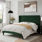 Allewie Full/Queen/King Size Velvet Bed Frame/Vertical Channel Tufted Wingback Headboard/Upholstered Platform Bed/Strong Wooden Slats/No Box Spring Needed/Easy Assembly/Green