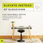 Product dimensions 40.9D x 40.9W x 83.8H centimetres Frame material Wood Special features Adjustable Product care instructions Wipe Clean STAY BALANCED - Sick of the slouch? Finished with fatigue? Say bye to poor posture and hello to productivity with our standing desk stool that keeps your posture straight and your mind focused. REDUCED PRESSURE - Don't take on the burden of the incoming holiday season by yourself! With a 10 degree tilt, this ergonomic stool helps to reduce duress on your lower back, while supporting your core. ADJUSTABLE COMFORT - Find your preferred position by adjusting this standing chair from 26 to 33 inches with a 360 degree swivel. The perfect stool for those who need a bit more mobility. (Weight limit 250lbs.) MULTIPURPOSE - Don't have a standing desk? Use our adjustable standing chair for classroom seating, kitchen island seating, or as an artist stool for big projects. The sky's the limit!