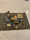 This dollhouse miniatures set includes assorted pillows, clocks, and a rug in a 1:12 scale. Perfect for adding realistic detail and charm to your dollhouse décor. The rug measures 9” by 13”. The little German style clock was handmade my me.