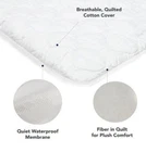 Protect your queen-sized mattress with this high-quality mattress protector. Made from durable cotton material, this mattress cover is designed to keep your bed safe from dust, dirt, and other allergens. The white color adds a touch of elegance to your bedroom while the thick padding provides ultimate comfort. Perfect for those who want to keep their bed clean and cozy. 100% Cotton quilted top 100% waterproof quilted mattress protector protects your investment, keeping your mattress as new as when you bought it Silky soft Cooling Viscose derived from Bamboo Quilted fitted cover is noiseless and has a waterproof barrier to protect your mattress from liquid spills, stains, perspiration and bodily fluids. Stretch knit sides with deep fitted pockets are made to fit most of today's higher profile and pillow-top mattresses; mattress protector covers top and sides of mattress Mattress protector is machine washable and can be tumbled dry on low setting and comes in Twin, Twin XL, Full, Queen, King and California King 3 available. $19 per 1 $32 per 2 $45 per 3 All brand new