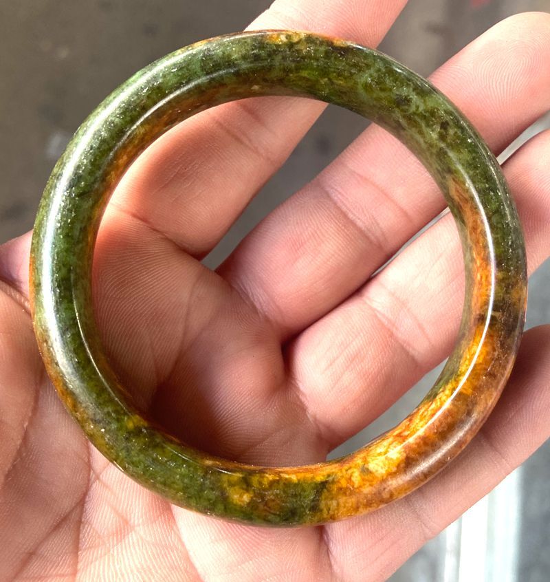 Peacock green rose peach blossom jade healing bangle bracelet 56-64mm