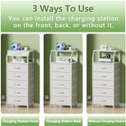 Return Policy Fast Delivery Trusted seller 5 Drawers Dresser with Charging Station, Tall Night Stand with Open Shelf, Storage Tower with PVC & Fabric Drawer, Bedside Table for Bedroom, Closet, Entryway, 3 Ways to Use, White Product Description 【3 WAYS TO USE】We have pre-drilled holes on both the front and back of the corresponding positions of the metal frame. You can install the charging station on the front, back or not according to your needs. 3 ways to use, unique DIY design, give you more choices and better use experience. 【UPGRADE CHARGING STATION】Equipped with 2 USB ports and 2 AC outlets, this nightstand allows you to effortlessly charge your phones, iPads, speaker box, lamps or other devices in your bedroom or living room. 【MULTIPLE USE OCCASIONS】The sleek outlook design makes this side table easily immerse into any home room. You can put it in your bedroom as a nightstand, in the living room as a side table, in the study to store stationery, in the children's room to store toys, and by the shoe bench for socks and other items. 【STURDY AND SAFE】Crafted with metal frame and particle board, this nightstand dresser ensures durability and longevity. 4 adjustable feet ensure stability on uneven ground. Anti-toppling device is provided to prevent it from falling down and aimed at providing stability and preventing shaking. This reflects our emphasis on safety, especially for kids. 【FABRIC DRAWER & OPEN SHELF】The fabric drawers offer capacious space for socks, underwear, makeup products, craft storage, and more. Foldable drawer, lightweight and durable, and won't pinch hands, also safe for child to use. 2-tier open shelf with wood top provides hard surface is ideal for desk lamp, mobile phone, books, tote etc. 【EASY TO ASSEMBLE】The storage drawer unit easy to assemble with tools included in the package, you can refer to the Installation instructions. Perfect gift with functional and decorative characters. Our perfect after-sales service will solve all customer problems for you within 24 hours. Shipping Returns Payment Shipping Shipping is FREE to all addresses other than APO/PO boxes in the lower 48 states. All our stock ships from US-based warehouses. Shipped via USPS or UPS (depending on location and package weight) Unless stated otherwise, all orders will ship within 24-72 hours of your payment being processed. Check our feedback to see the great reviews of FAST shipping we offer. Returns Seller does not accept returns Payment We currently accept payment via eBay managed payments only. Once payment is cleared, we will dispatch your shipment within 1-3 business days. Please refer to the "Shipping" tab for more information regarding shipping speed to your destination.