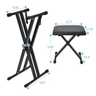 【Premium Material】Tipatyard heavy duty keyboard stand is made of durable steel material.Power coated finish makes the keyboard stand rust-proof that can be used for long time. And PU leather bench is soft enough to practise for hours. 【Adjustable & Portable】The keyboard stand is adjustable with 7 heights and the piano bench is with 4 heights to adjust.Easy-to-use pull knob releases and locks the center pin for quick, uncomplicated height and width adjustments enabling ergonomic playing and use with a wide range of keyboards.Lightweight stand quickly folds down flat for ease of load in, setup, teardown, and load out while also enabling compact storage and efficient transportation. 【Stable & Safe】Double-X construction ensures stability for different kinds of electronic keyboards.Non-slip caps and locking straps ensure the stand and instrument stay in place during performance.They can add extra stability to prevent the keyboard falling down. 【Easy Assembly】Following the instruction video, you can easily to assemble the keyboard stand and the bench in minutes.And they can be folded into thin size to take it out or save space in your room. 【Wide Application】Tipatyard keyboard stand and bench is widely used in band performance,raree performance, studio recording, stage and DJ shows.No matter you are novel, amateur, or professional, the stand is your great choice.