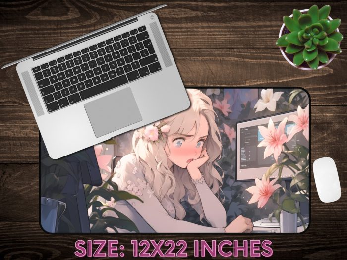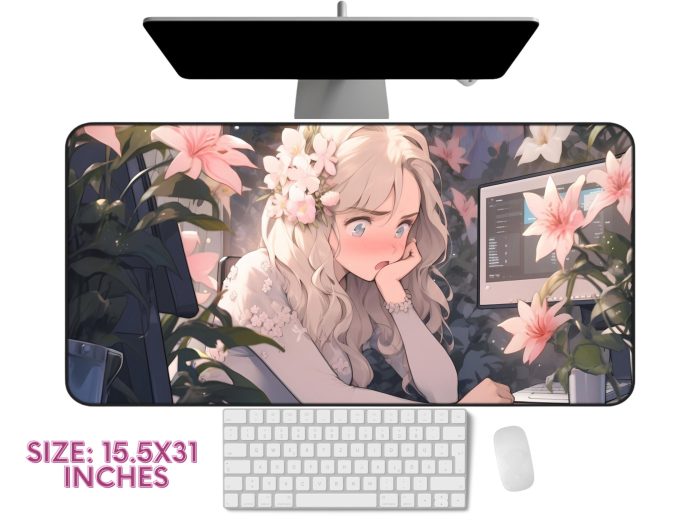 Anmie Desk Mat, Pink Desk Mat, Cute Gamer Girl Desk Accessories, Kawaii Japanese Desk Mat, Gaming Desk Mat Aesthetic, Keyboard Mat