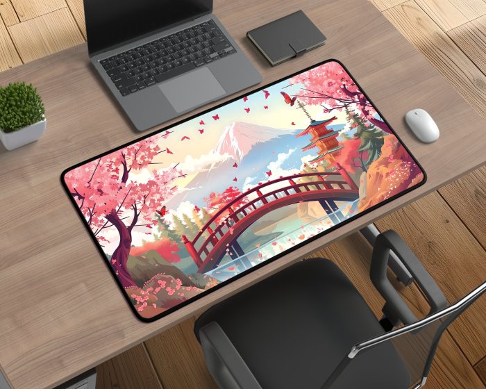 Elevate the ambiance of your work or home office space with our Extra Large Desk Mat, showcasing a beautiful japanese landscape. This desk accessory not only adds aesthetic appeal but also enhances efficiency for your daily tasks, gaming sessions, or professional work.
