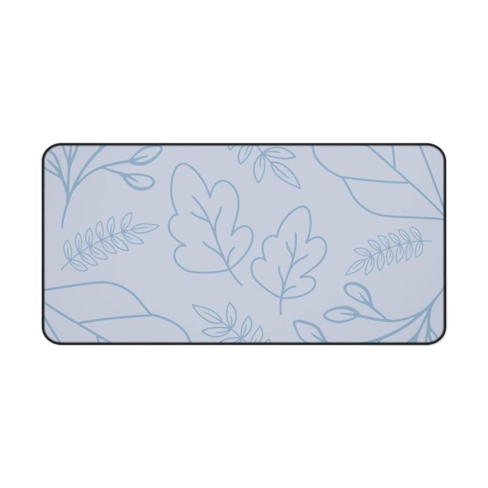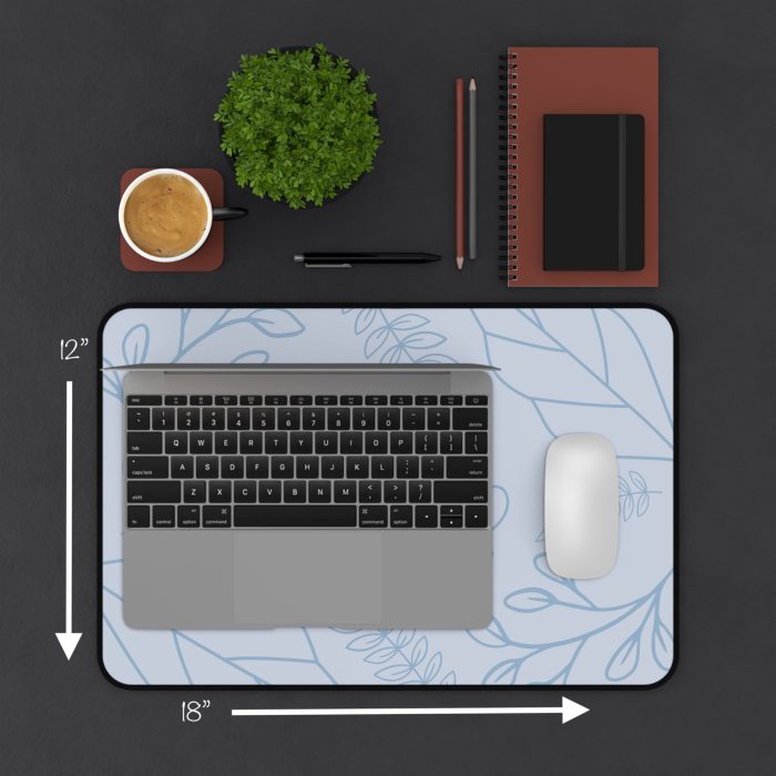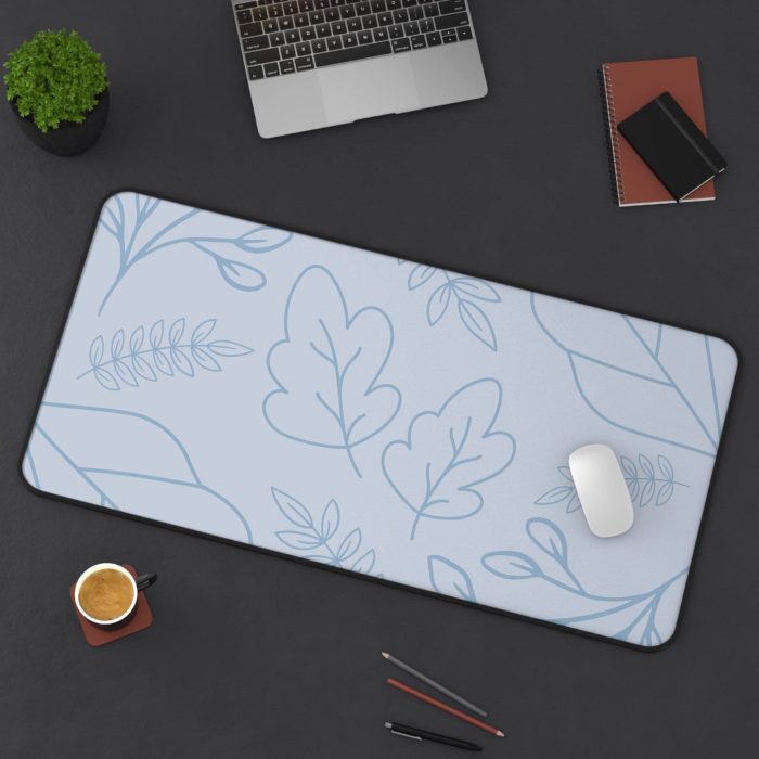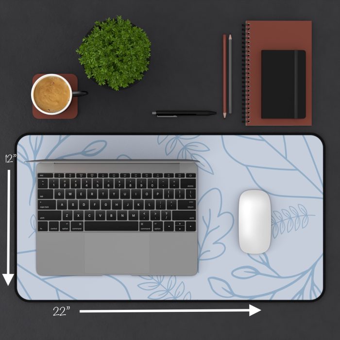 Botanical line art blue desk mat, minimalist desk mat for workspace, crafting desk mat, computer mousepad for office, gaming mousepad.